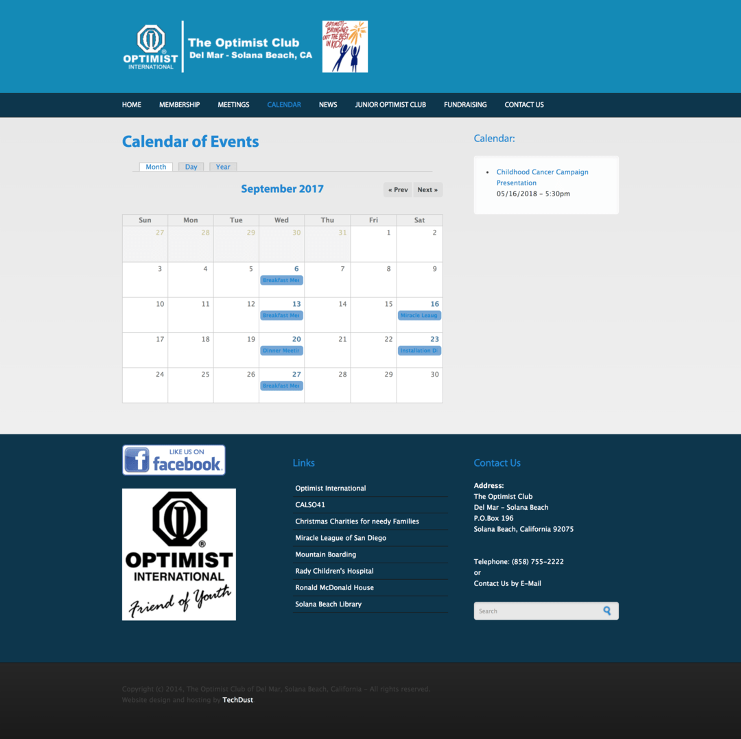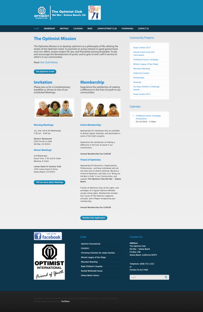 Solana Beach Non-Profit Optimist Club Website Design.